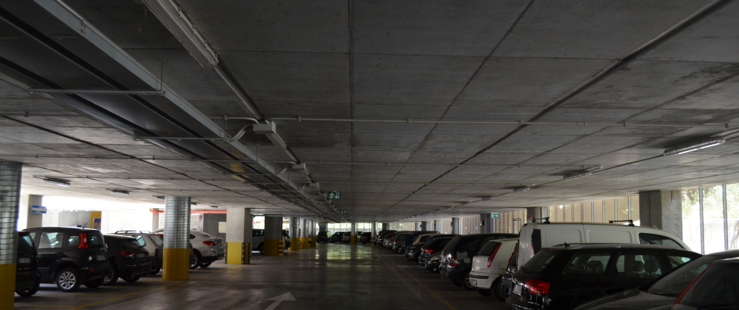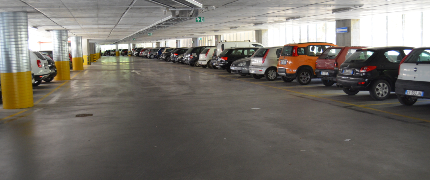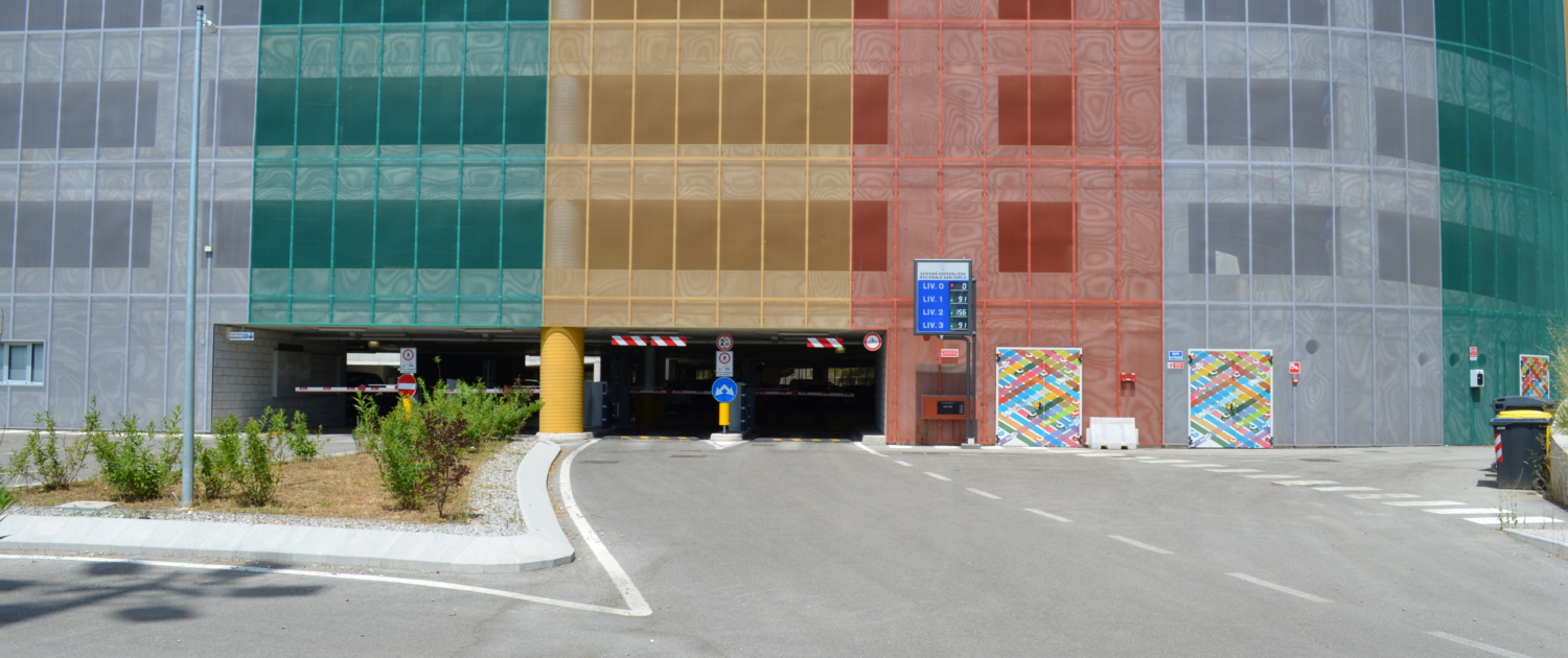 A servizio dell’azienda ospedaliera “San Carlo” di Potenza, il complesso infrastrutturale del parcheggio vanta di diverse aree di sosta, fra cui un multipiano sviluppato su quattro livelli che, oltre ad offrire il servizio di parcheggio, al livello di copertura ospita la foresteria, composta da area ristoro ed alloggi pronti ad ospitare visitatori.